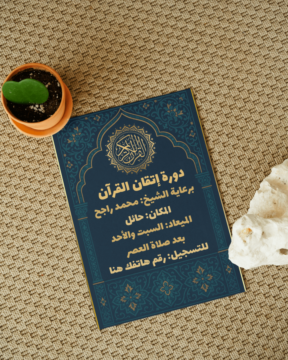 Promote your Quran course in style with this elegant Arabic flyer template. Designed for Islamic events, Quran schools, and mosques, this Canva template is fully editable — just click the link, customize your details, and you're ready to share or print!